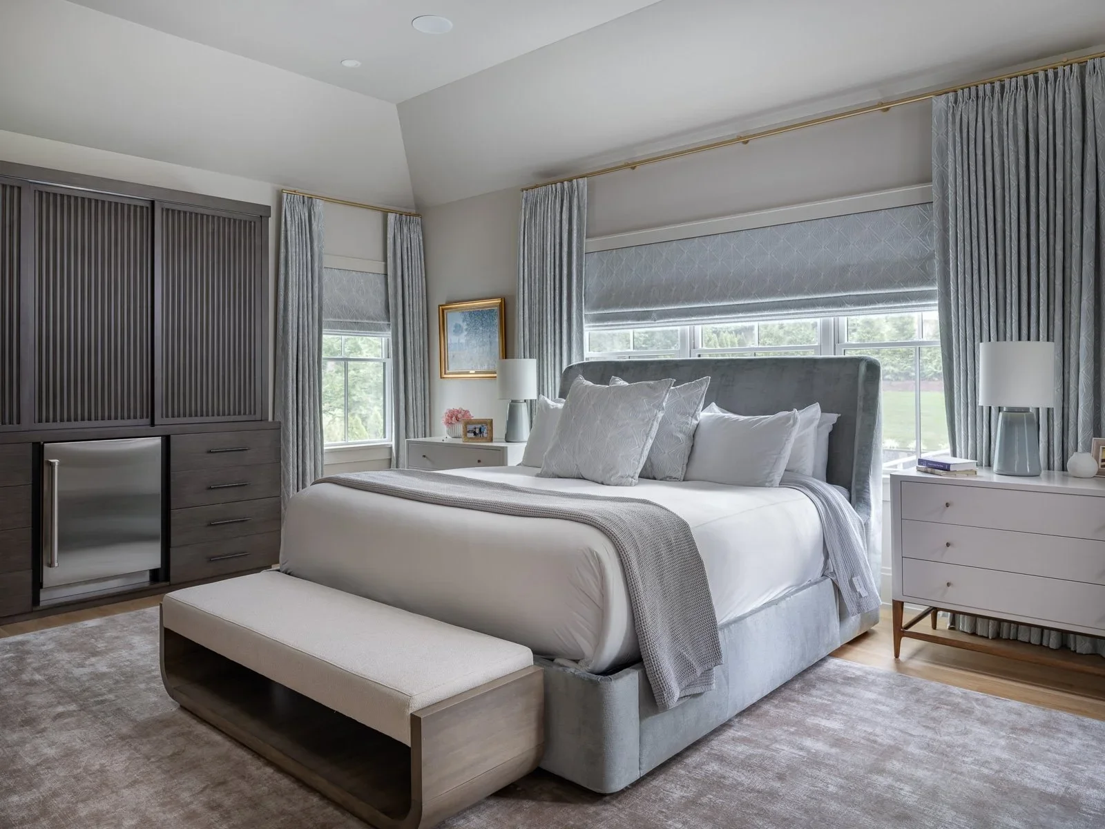 There’s nothing more important than a good night’s sleep, and I work with my clients to help them achieve that. It’s one of the most personal rooms to design - we discuss how much darkness they need, how much space they need for clothes and shoes, and whether they watch TV in bed.